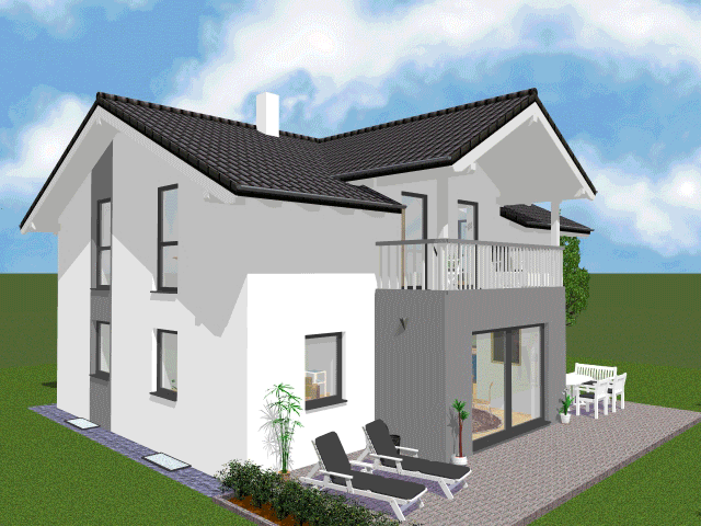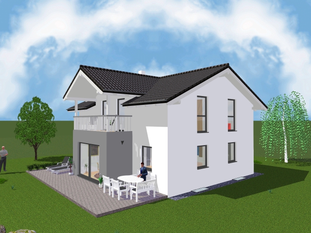 Haus laut Plan inkl. Quergiebel mit Erker und Balkon