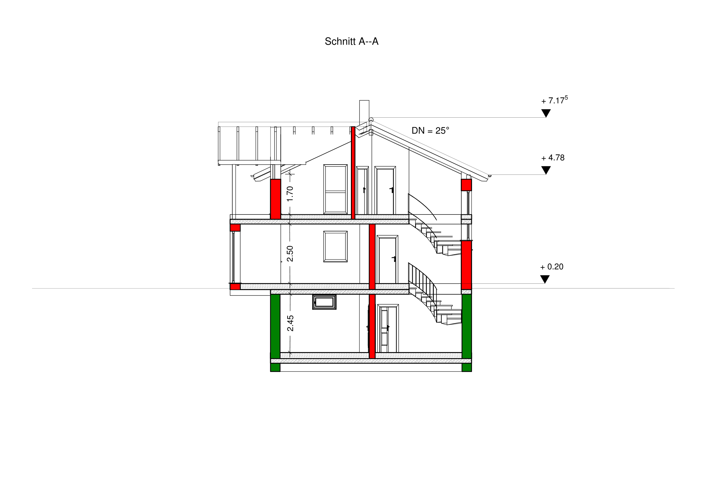 Kniestock 170 cm, 25° Satteldach, 30 cm Dachdämmung