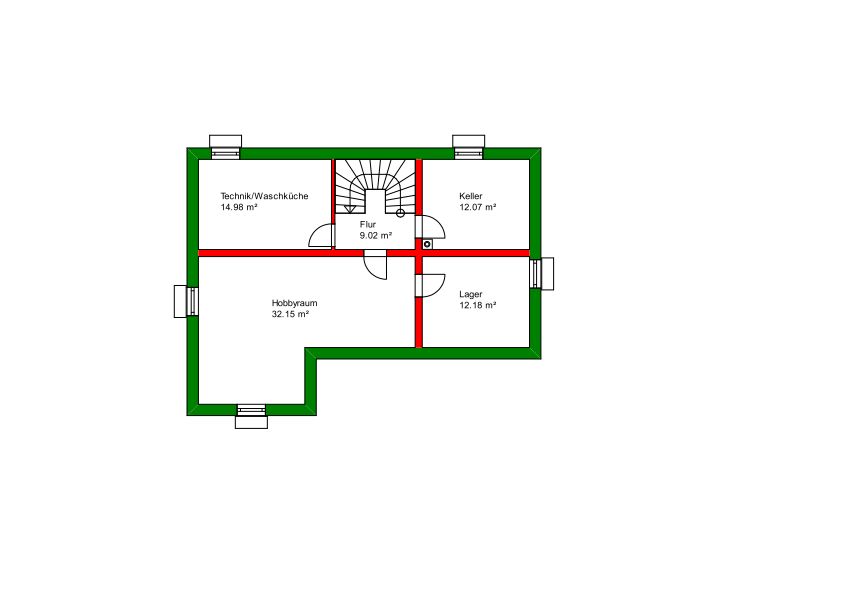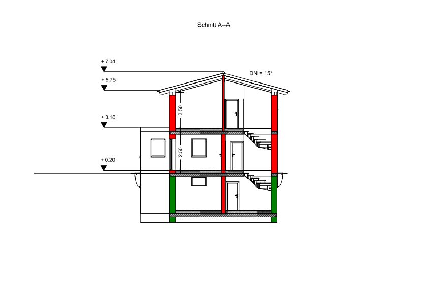 3-Fach Wärmeschutzverglasung 0,5W/m²K, Vollgeschoss, 15° Satteldach