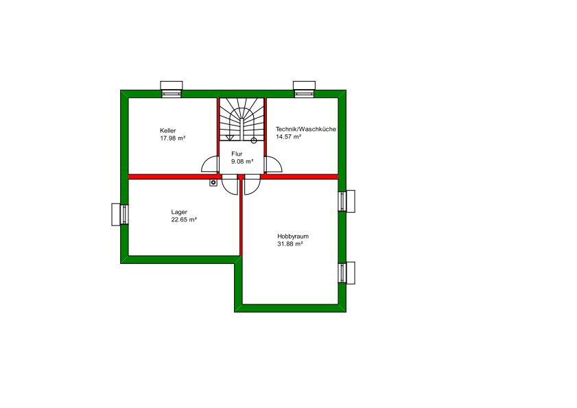 3-Fach Wärmeschutzverglasung 0,5W/m²K, Vollgeschoss, Flachdach