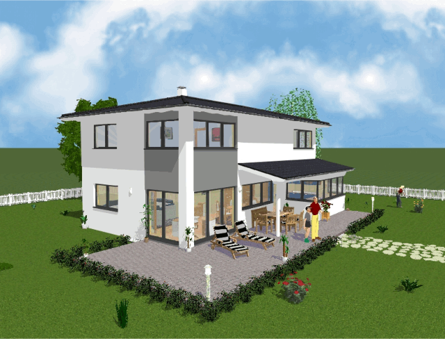 Haus laut Plan inkl. Erker und Terrassenüberdachung