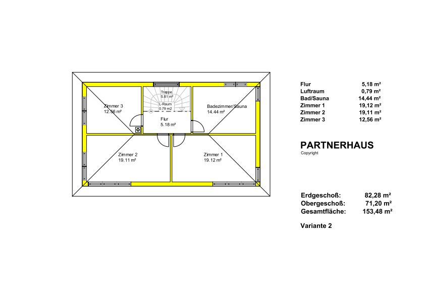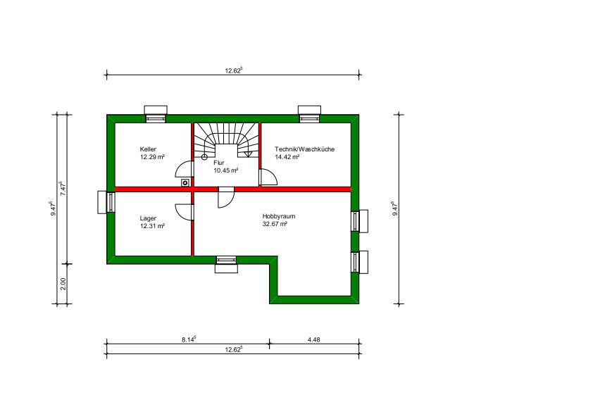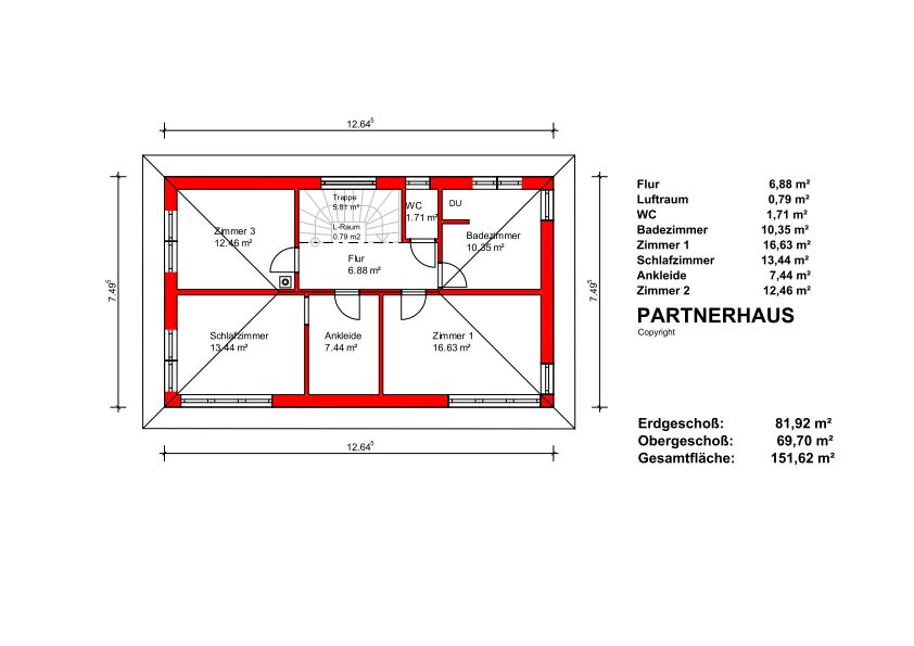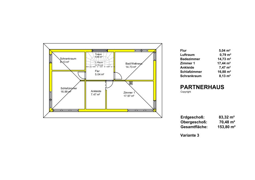 3-Fach Wärmeschutzverglasung 0,5 W/m²K, Vollgeschoß, 14° Walmdach