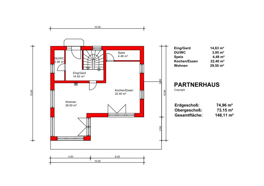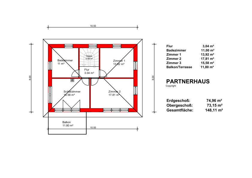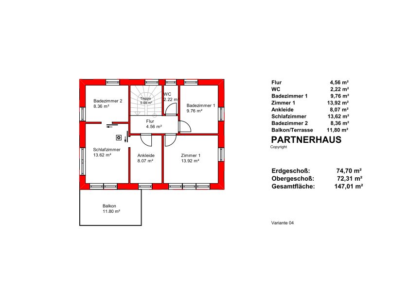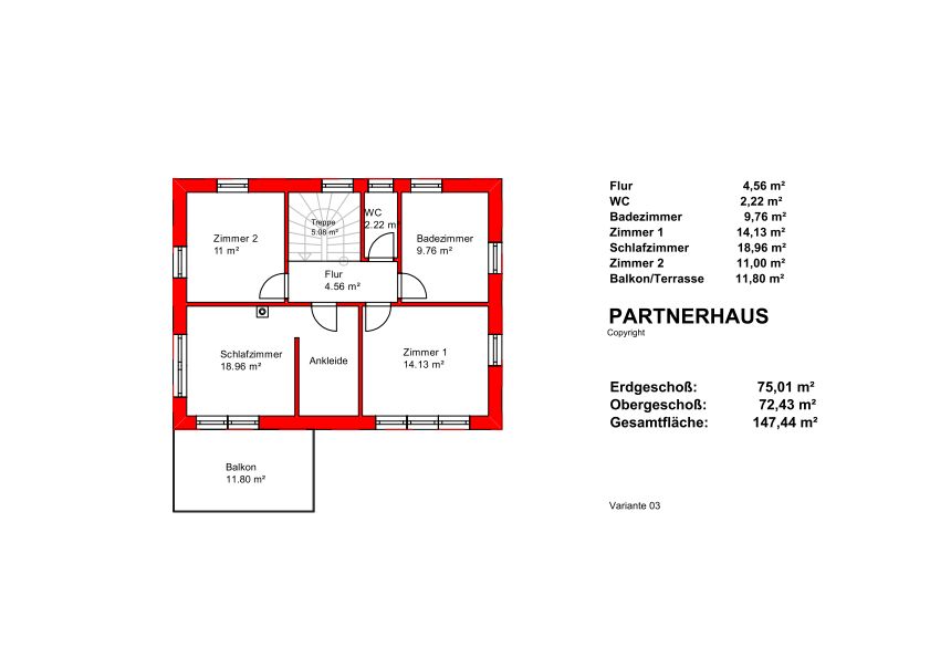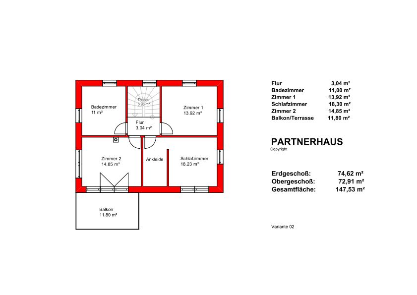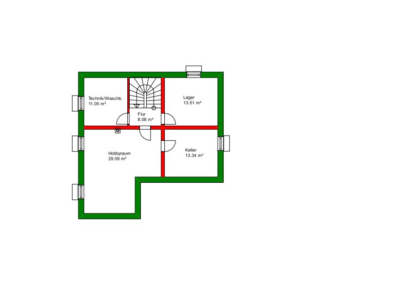 3-Fach Wärmeschutzverglasung 0,5W/m²K, Vollgeschoss, 14° Walmdach