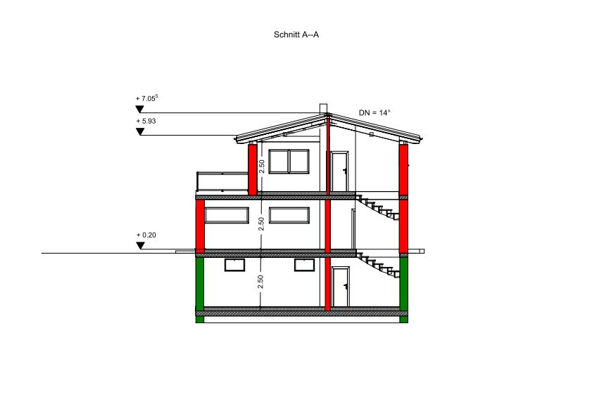 30 cm Dachdämmung, Dachvorstand 4 x 60 cm, 25 cm Estrichaufbau im EG und OG