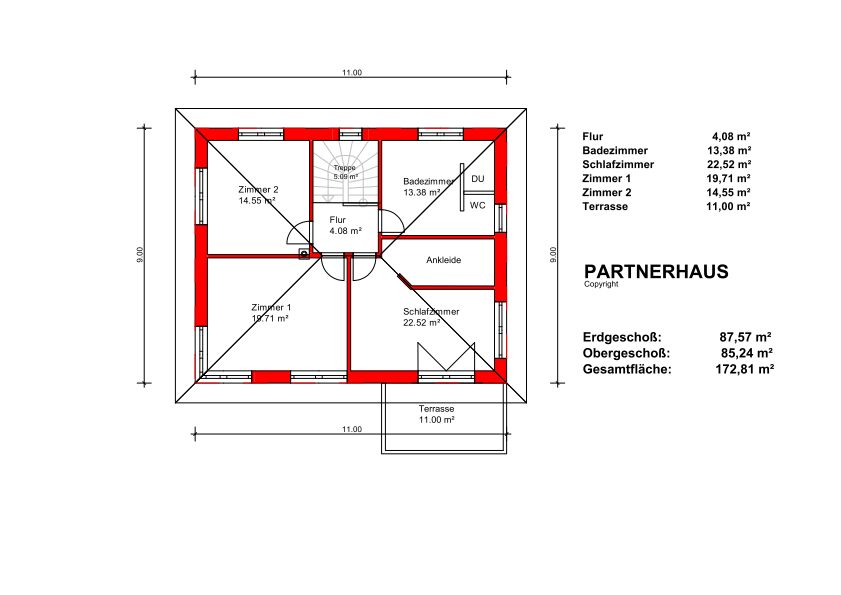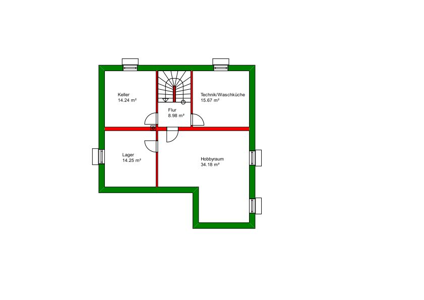 3-Fach Wärmeschutzverglasung 0,5W/m²K, Vollgeschoss, 14° Walmdach