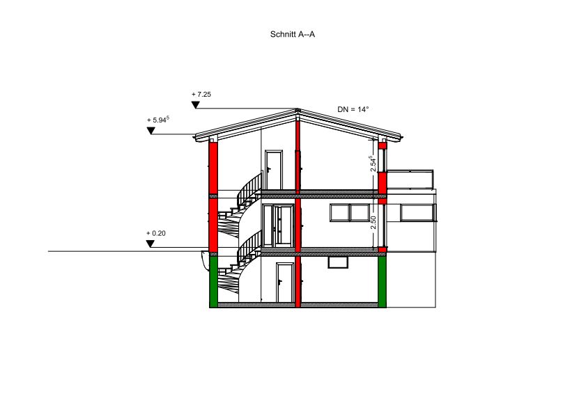 30 cm Dachdämmung, Dachvorstand 4 x 70 cm, 25 cm Estrichaufbau im EG und OG
