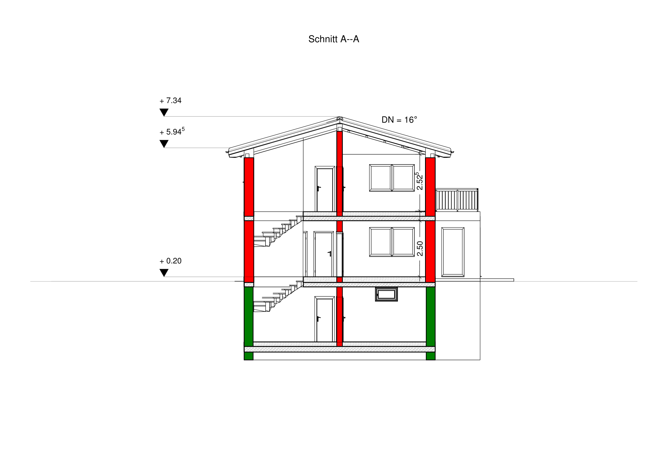 Kniestock 250 cm = Vollgeschoß 16° Walmdach, 30 cm Dachdämmung