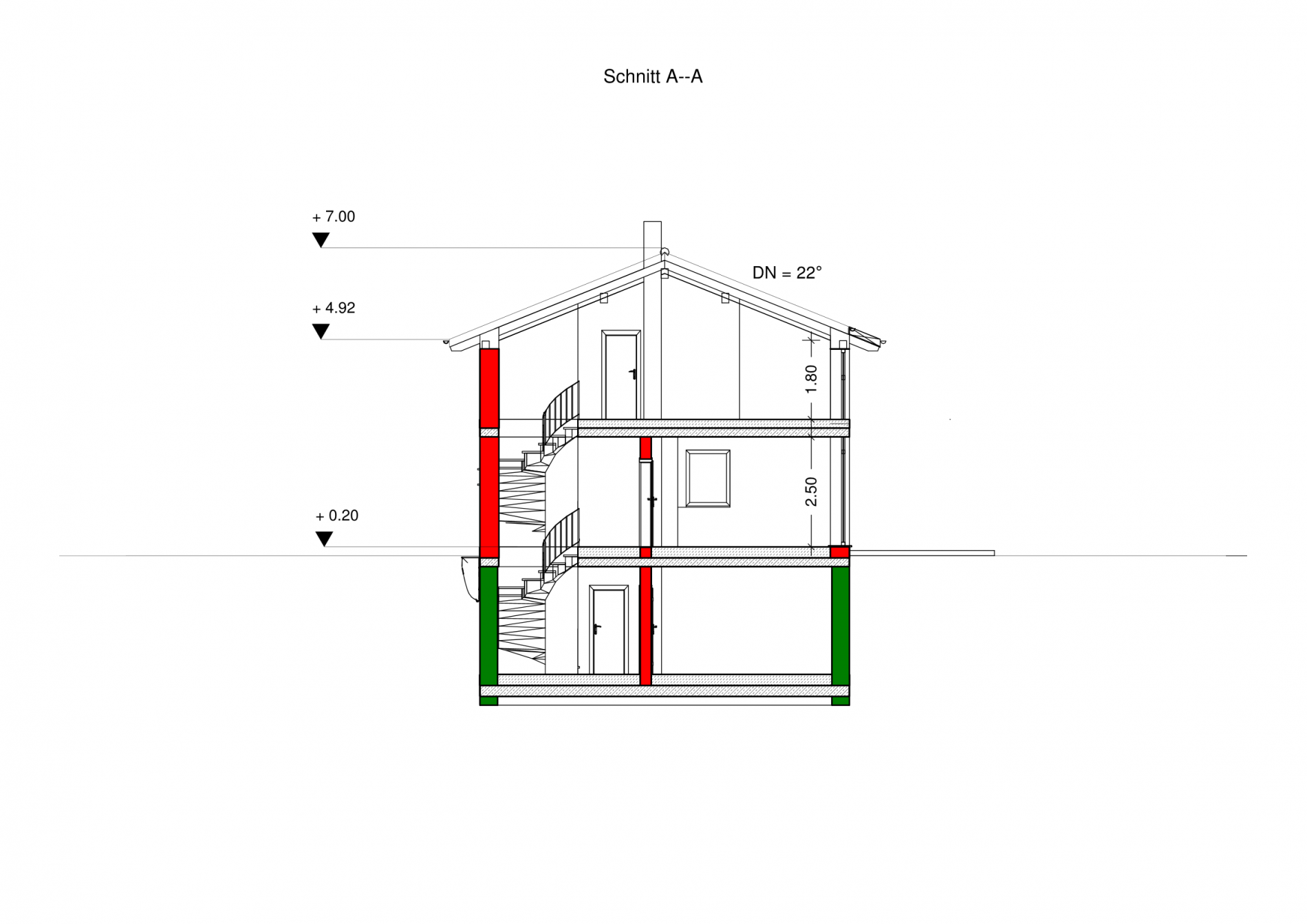 Dachvorstand 4 x 70 cm, 25 cm Estrichaufbau im EG und OG