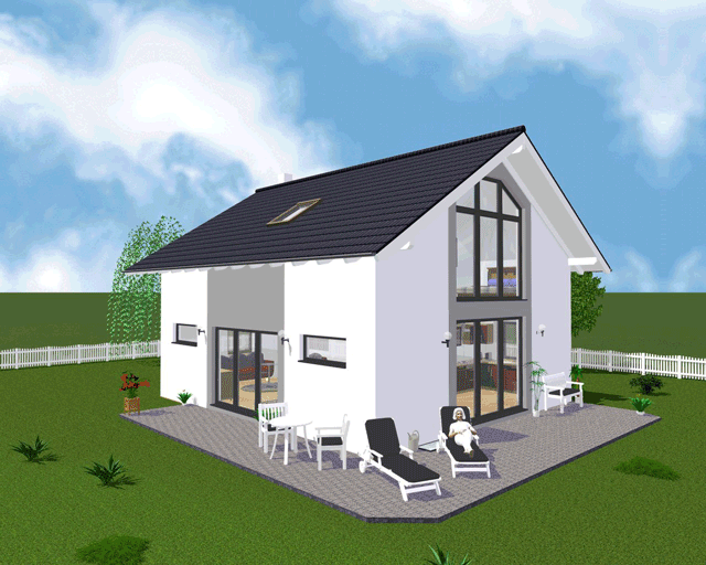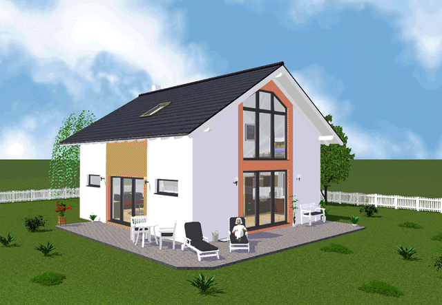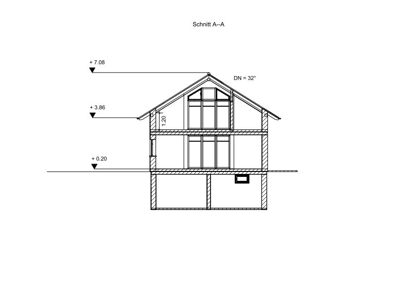 3-Fach Wärmeschutzverglasung 0,5W/m²K, Kniestock 120 cm (Netto), 32° Satteldach,