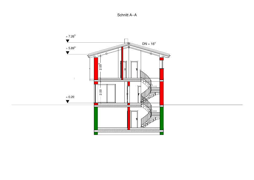 Dachvorstand 4 x 70 cm, 25 cm Estrichaufbau im EG und OG