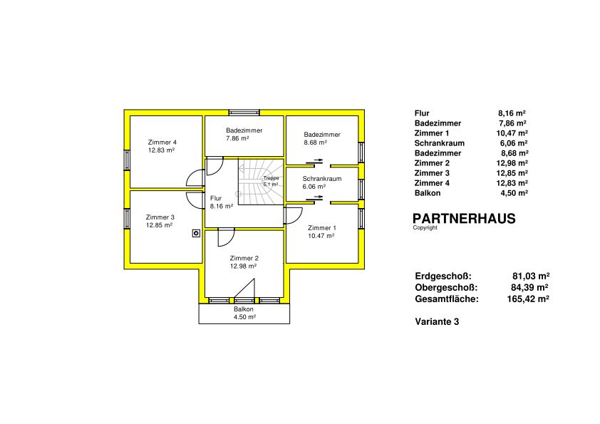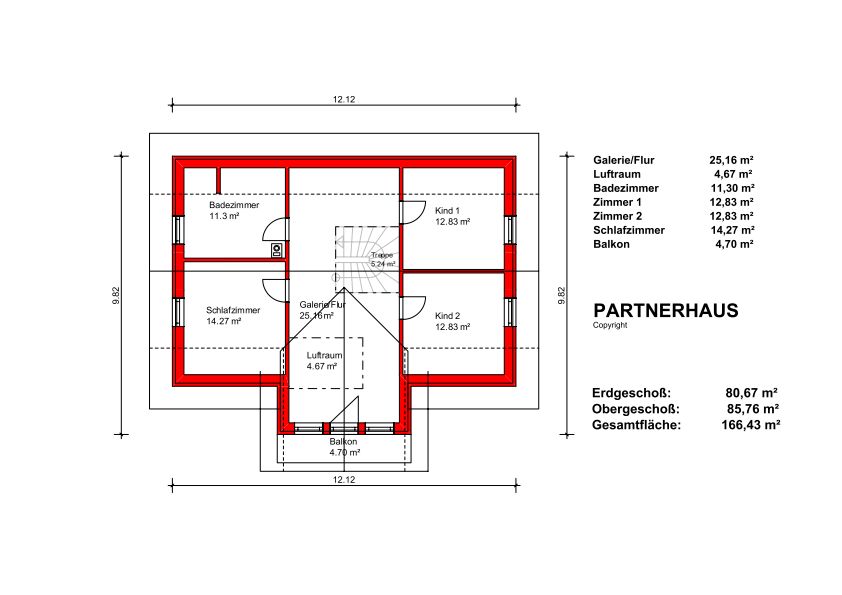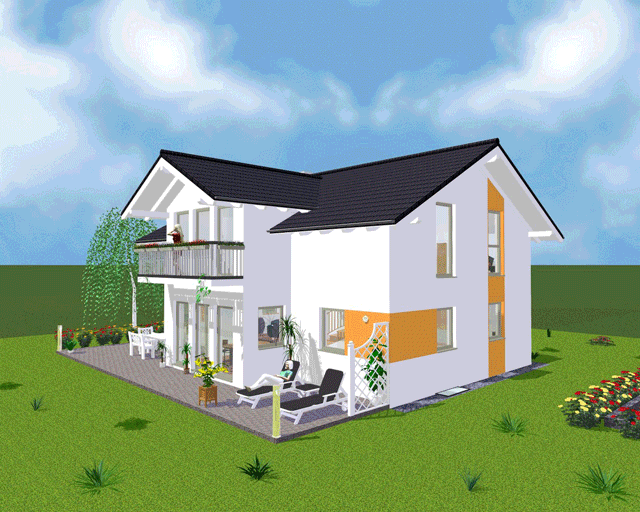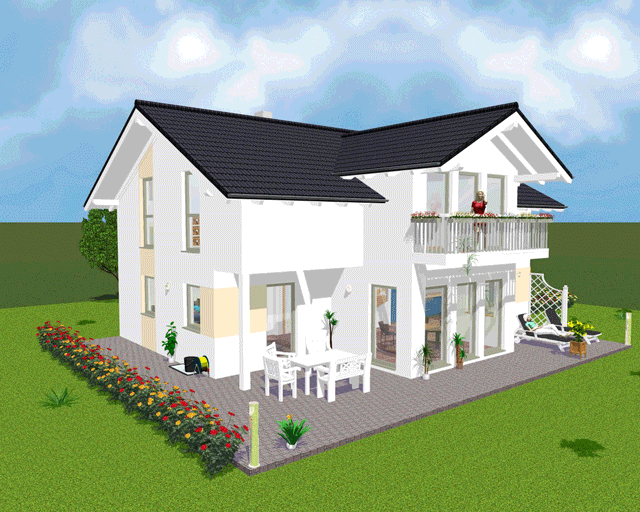 Haus laut Plan inkl. Quergiebel, Balkon und Balkonüberdachung