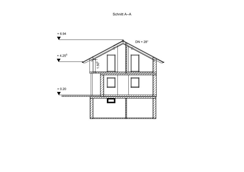 3-Fach Wärmeschutzverglasung, Kniestock 150 cm (Netto), 28° Satteldach