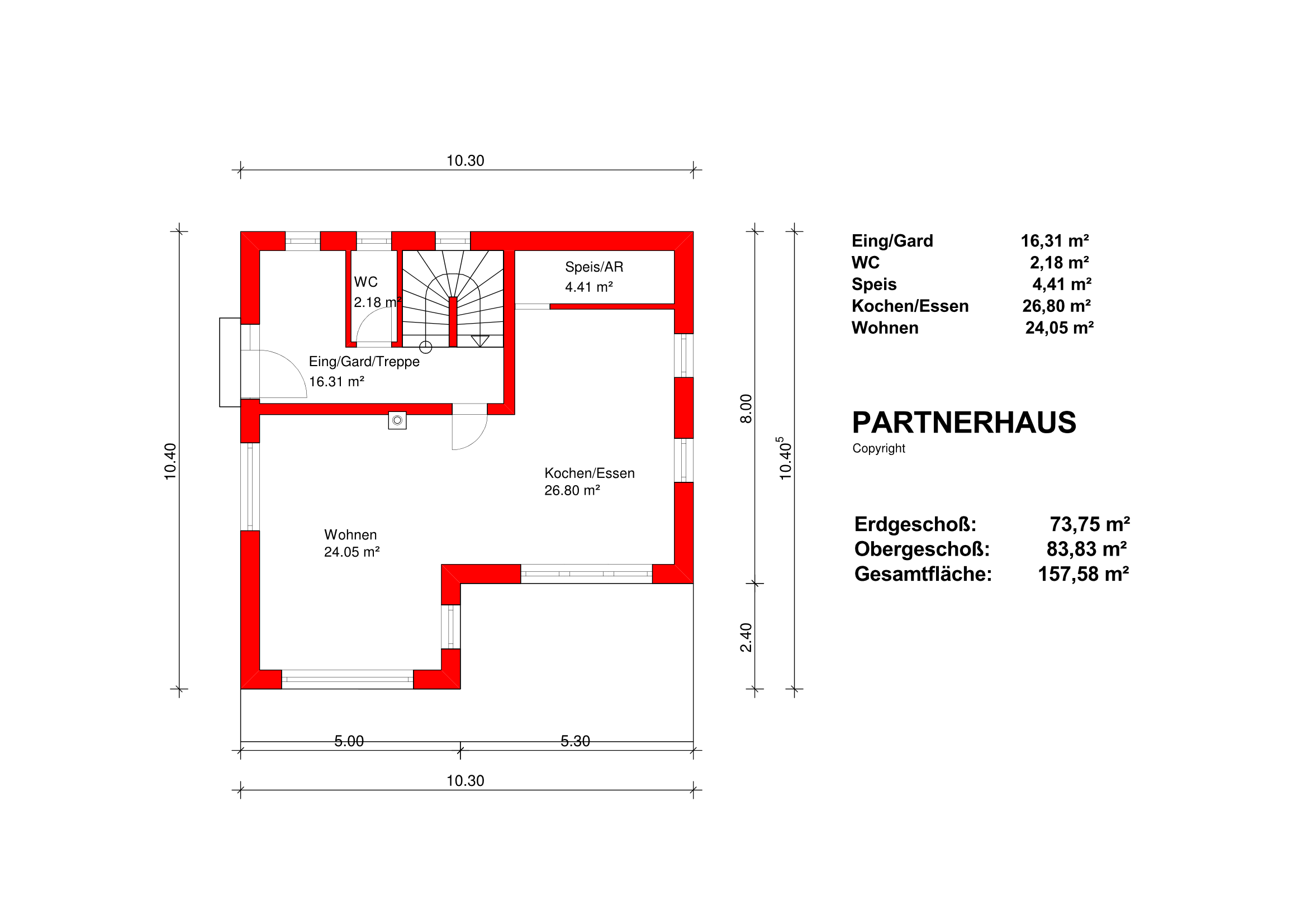 | Ausbaustufe 1 | Ausbauhaus außen und innen komplett fertig (Siehe Leistungsbeschreibung) Preis € 258.740,-- |