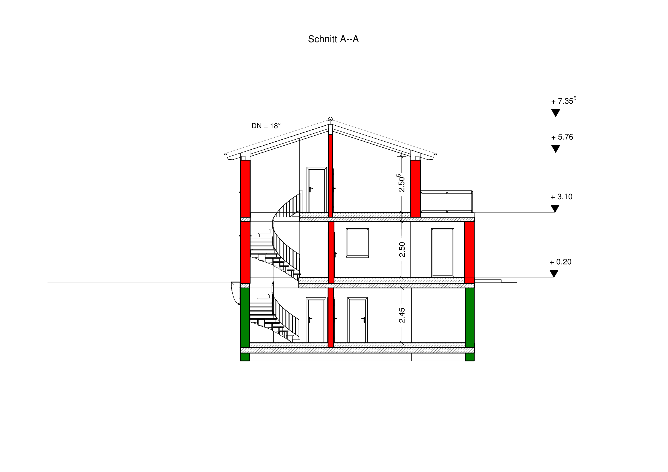 Kniestock 250 cm = Vollgeschoß 18° Satteldach, 30 cm Dachdämmung