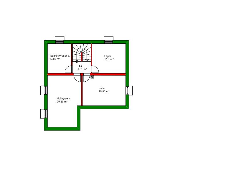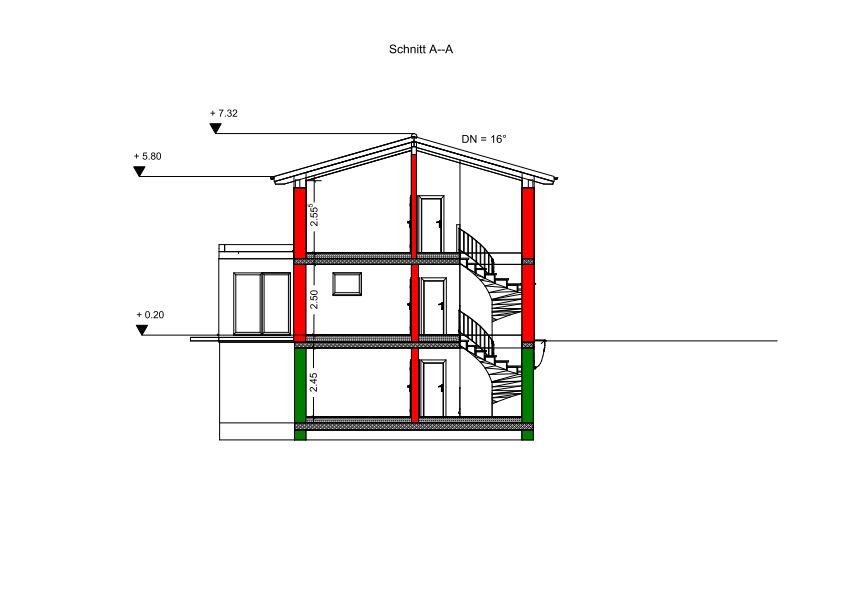 3-Fach Wärmeschutzverglasung 0,5W/m²K, Vollgeschoss, 16° Satteldach