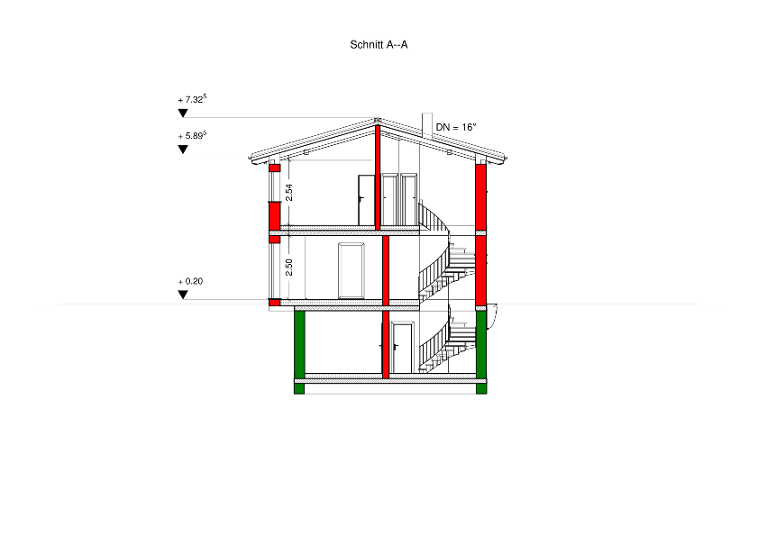 Dachvorstand 4 x 70 cm, 25 cm Estrichaufbau im EG und OG