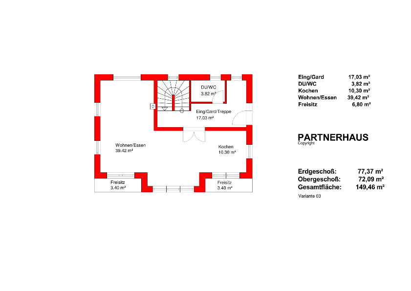 | Ausbaustufe 1 | Ausbauhaus außen und innen komplett fertig (Siehe Leistungsbeschreibung) Preis € 259.100,-- |