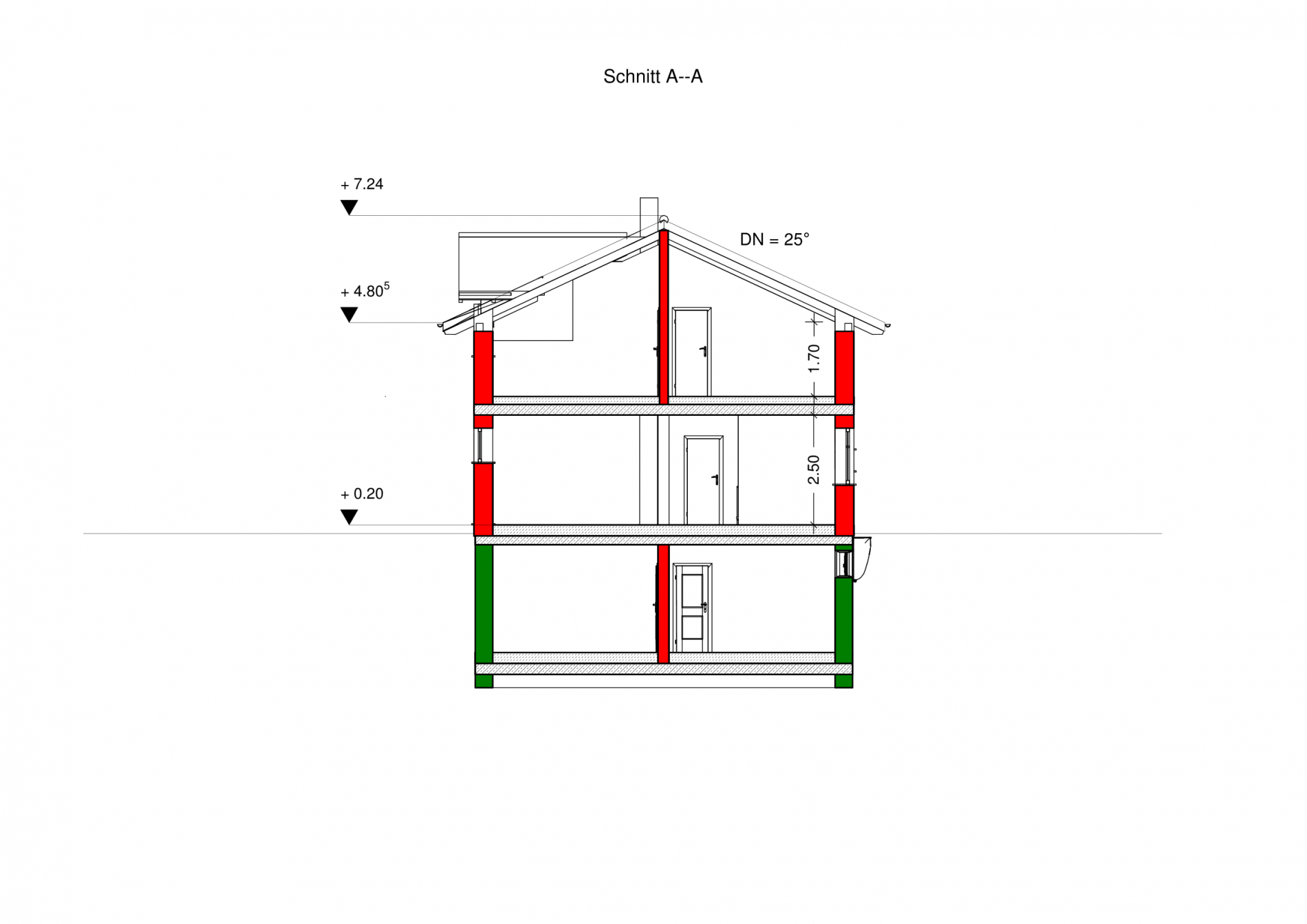 Dachvorstand 4 x 70 cm, 25 cm Estrichaufbau im EG und OG.