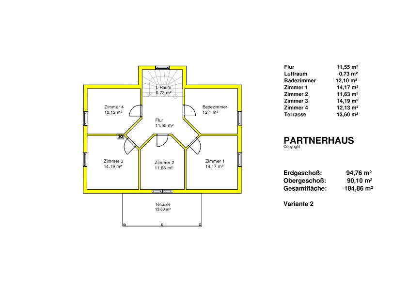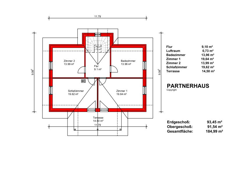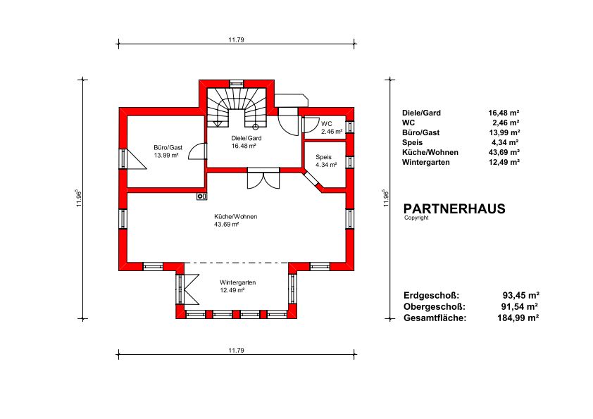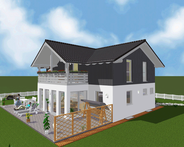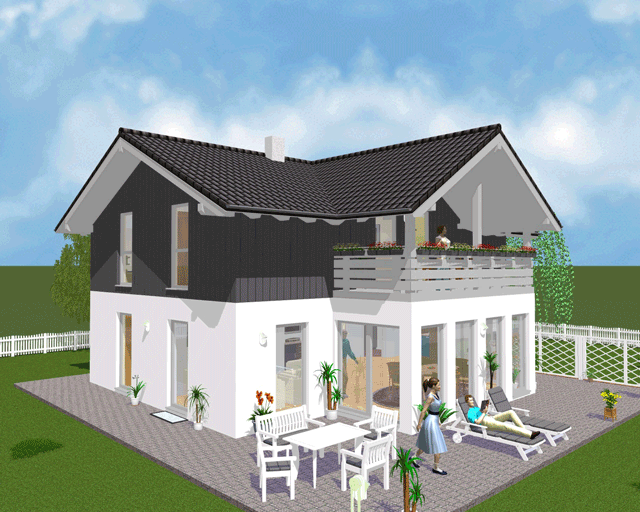 Haus laut Plan inkl. Gaupe, Quergiebel mit Wintergarten, Terrasse und Balkon