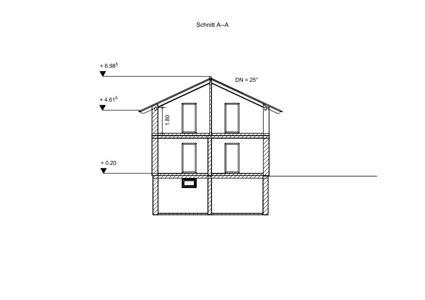 3-Fach Wärmeschutzverglasung 0,5W/m²K, Kniestock 180 cm (Netto), 25° Satteldach