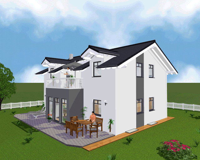 Haus laut Plan inkl. Erker, 2 Gaupen, Loggia und Balkon
