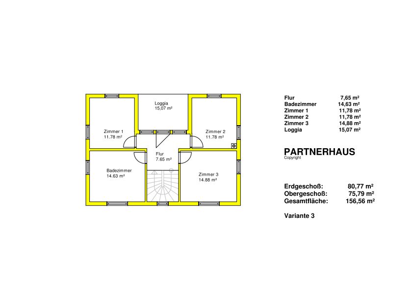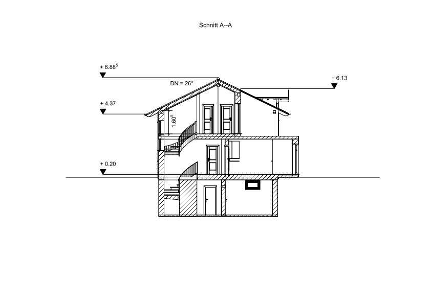 3-Fach Wärmeschutzverglasung 0,5W/m²K, Kniestock 160 cm (Netto), 26° Satteldach