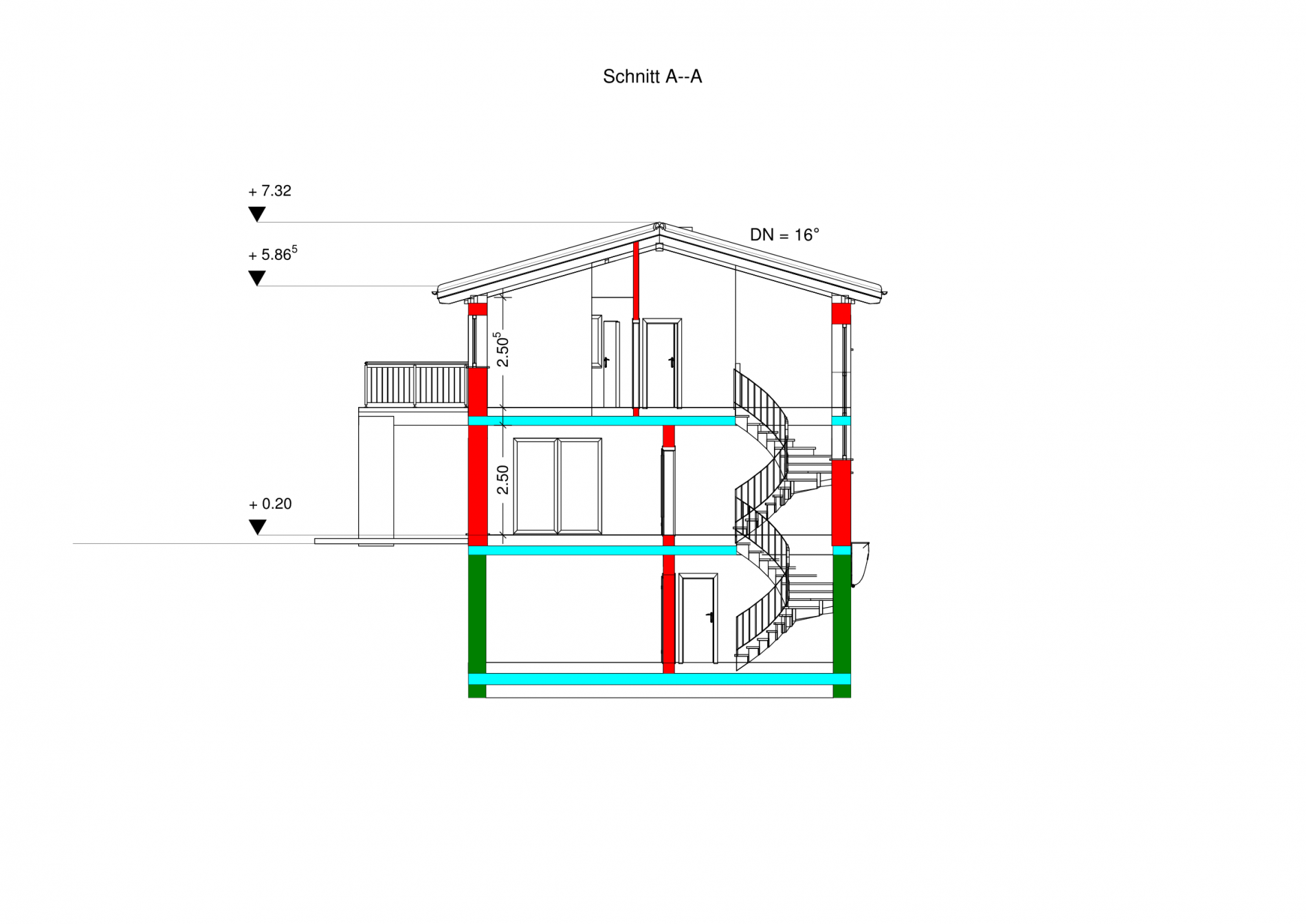 Dachvorstand 4 x 70 cm, 25 cm Estrichaufbau im EG und OG