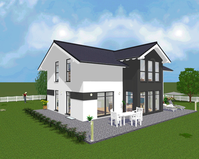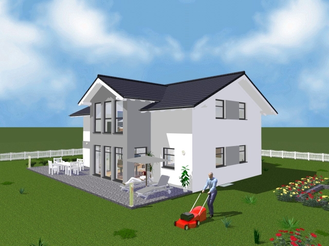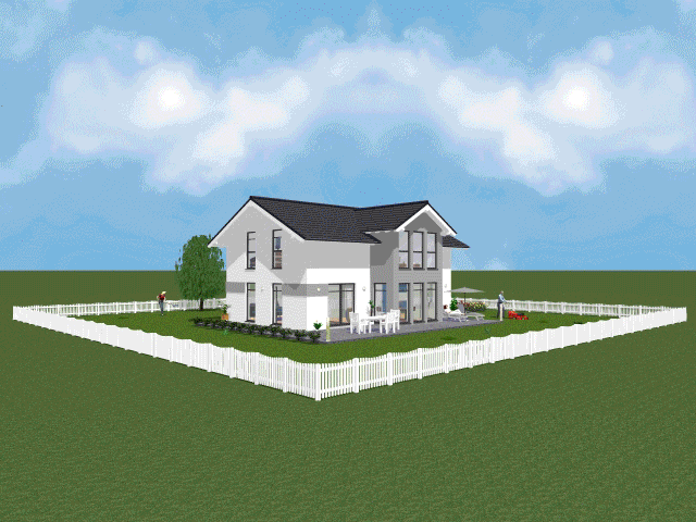 Haus laut Plan inkl. 2 Quergiebel und Wintergarten