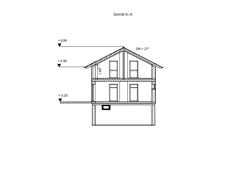 3-Fach Wärmeschutzverglasung, Kniestock 160 cm (Netto), 27° Satteldach