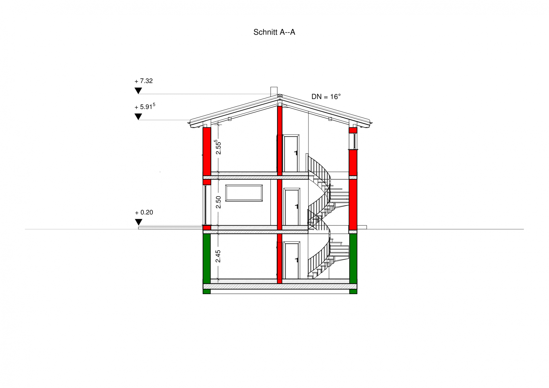 Kniestock 250 cm = Vollgeschoß 16° Walmdach, 30 cm Dachdämmung